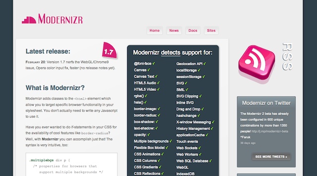 Modernizr lets you target specific browser functionality in your stylesheet by adding classes to your element. What’s easy is you don’t need to actually write any Javascript code to use this.